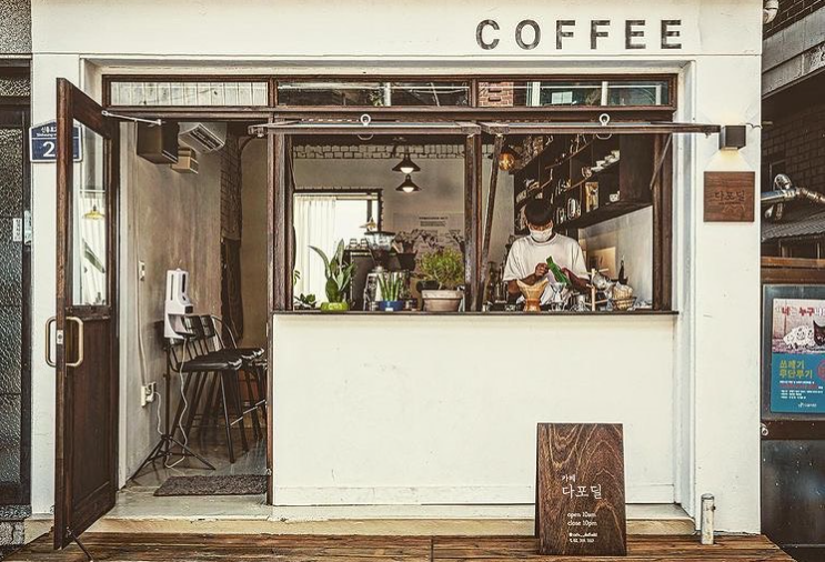 소개해드릴 곳은 생긴 지 얼마 되지 않은 신상 카페인 카페다포딜 (Cafe_daffodil)입니다. 입구에서부터 유럽 로컬 카페의 느낌이 강하게 나는데요. 사장님도 굉장히 친절하시기로 소문이 나있고 커피 종류도 굉장히 다양하다고 하네요. 카페 내부에는 3개 정도의 테이블이 있고 밖에 바 테이블이 있어서 혼자 오신 분들도 잠시 앉아서 사장님과 담소를 나누시면서 커피 한 잔의 여유를 즐기고 가실 수 있습니다.