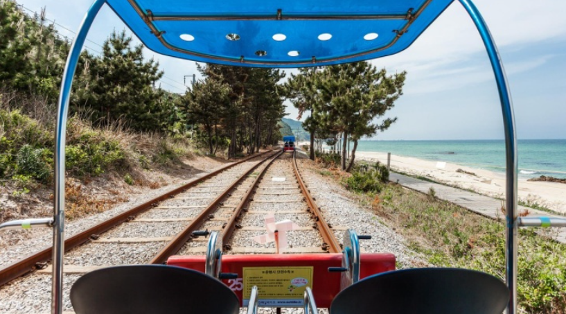 레일바이크는 전국 곳곳에 많은데요. 이 정동진레일바이크는 해변을 옆에 두고 달려서 바닷바람을 즐기면서 타는 매력이 있습니다.