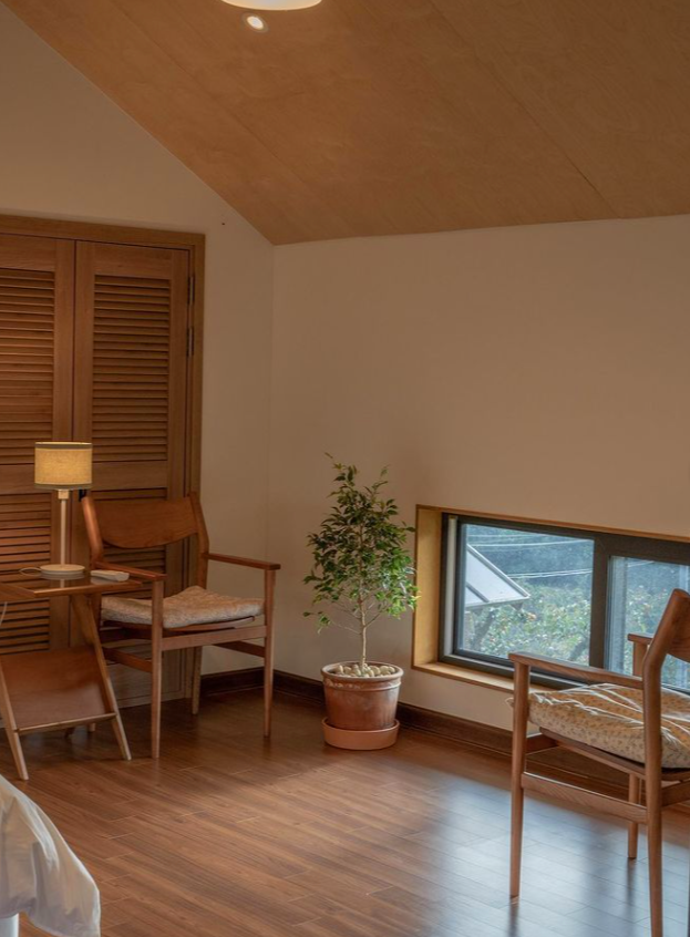 방은 총 2개인데, 방에서 창문 밖으로 내다보는 뷰는 마치 액자에 그려진 나무를 보는 것처럼 선명한데요. 아늑함이 가득한 공간인 것 같습니다.