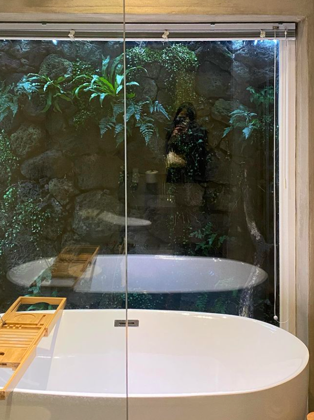 이곳의 특별한 공간이라 함은 바로 이 아담한 욕조인 것 같아요. 마치 숲속에서 반신욕을 하는 듯한 느낌을 받을 수 있는 곳, 여독을 풀면서 따뜻한 차 또는 와인을 한잔하면서 반신욕을 즐기면 좋을 공간입니다.