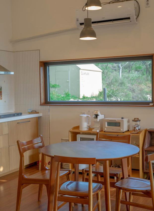 주방은 거실 바로 옆에 위치해 있는데 없던 요리 욕심도 생기게 하는 공간인 것 같은데요. 마치 숲속에 한적한 카페에 온 것 같은 예쁜 공간인데요. 웬만한 주방 도구들이 다 갖추어져 있어서 음식을 해 먹을 수 있는데, 기름지고 냄새 심한 것만 아니면 가능하다고 합니다. 직접 내릴 수 있는 드립 커피가 있어서 카페 타임도 가질 수 있겠죠.