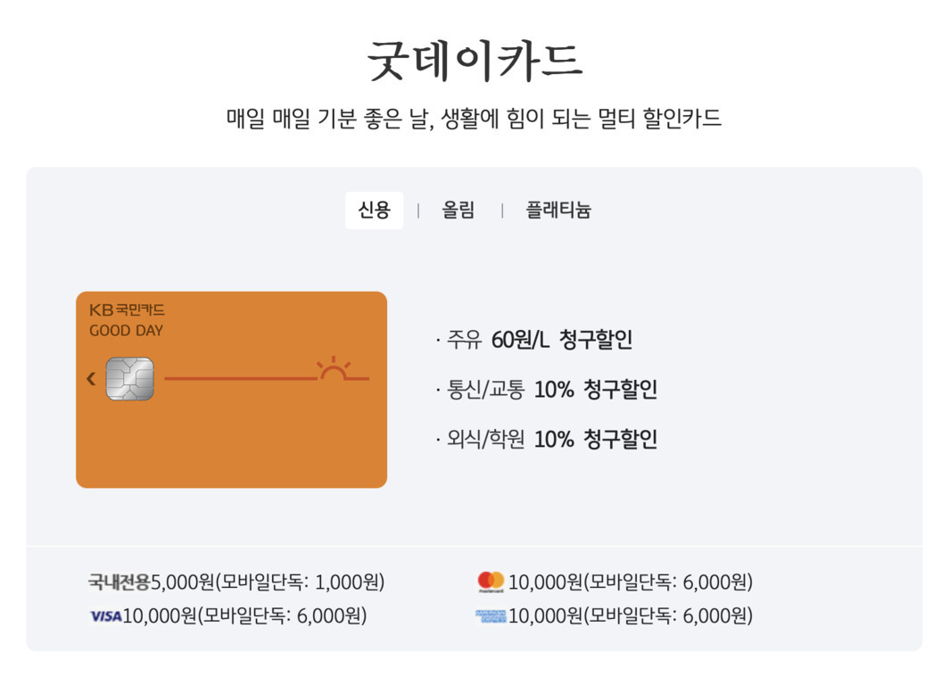 KB국민 굿데이카드 - 사회초년생을 위한 실용적인 혜택 구성