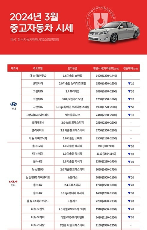 이러한 시세는 차량의 주행거리, 옵션, 관리 상태 등에 따라 달라질 수 있습니다. 특히 최상위 트림이나 하이브리드 모델의 경우 일반 가솔린 모델보다 약 200만원~300만원 정도 높은 가격대를 형성하고 있습니다.