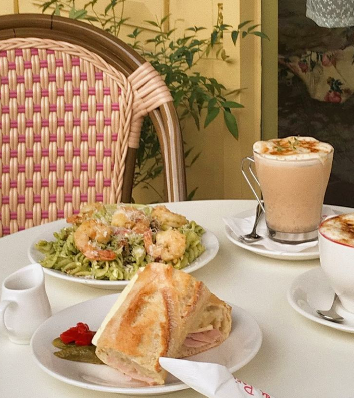 아기자기한 분위기의 카페에 걸맞게 음식들도 심플하고 깔끔한 것들로만 구성이 되어 있는데요. 파리 스타일의 바게트 샌드위치인 잠봉뵈르를 비롯해서 루꼴라 페스토 파스타, 올리브 살라미 크루아상 등 전통 유럽식 음식들이 제공이 되고 있습니다.