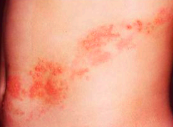 대상포진은 처음에는 수두병원체와 같은 바이러스의 형태로 물집이 잡히기 전에 신경절을 따라 가볍고 따가운 발진이 발생하게 됩니다.