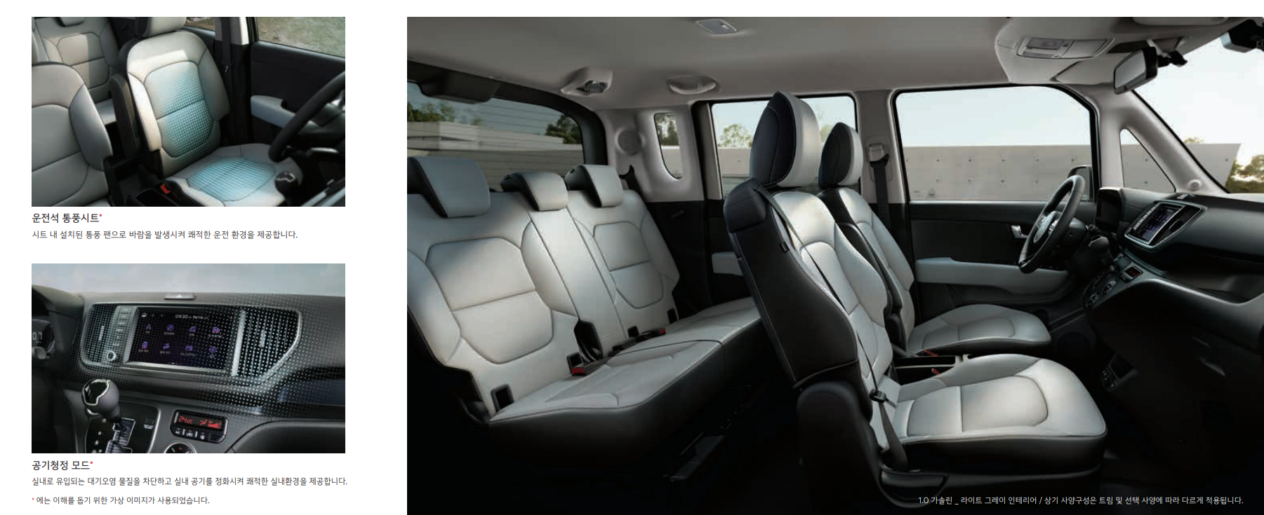 아래는 2인승 밴 레이의 모습인데요. 1인승 밴에 비해서도 넓은 공간과 동승자 시트를 함께 갖춰 다양한 모빌리티 라이프를 즐길 수 있습니다.