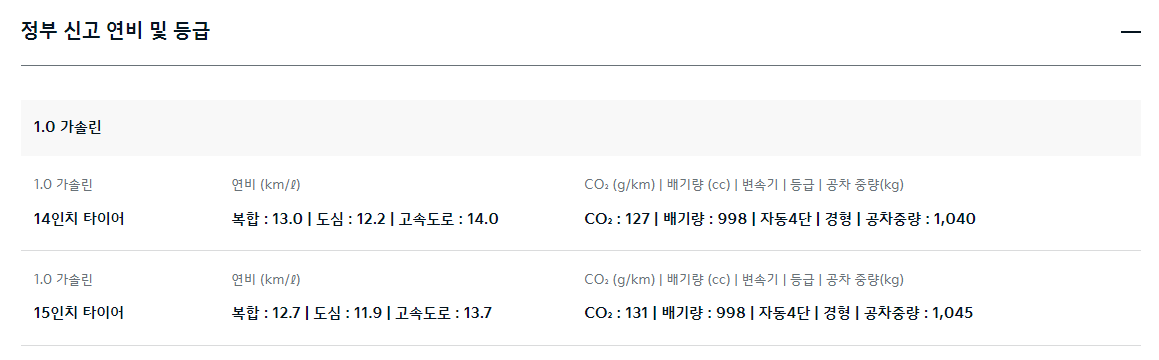 2024 레이 제원은 아래와 같습니다. 특히나 연비에서는 우수함을 자랑하고 있는데요. 2024년 레이 공인 연비는 복합 13.0km/l, 도심 11.8km/l, 고속도로 14.7/l로 경차 중에서도 꽤 우수한데요. 경차의 최대의 장점이 유류비인데, 레이는 그중에서도 연비가 더 뛰어나니 경제적인 차라고 할 수 있겠습니다.