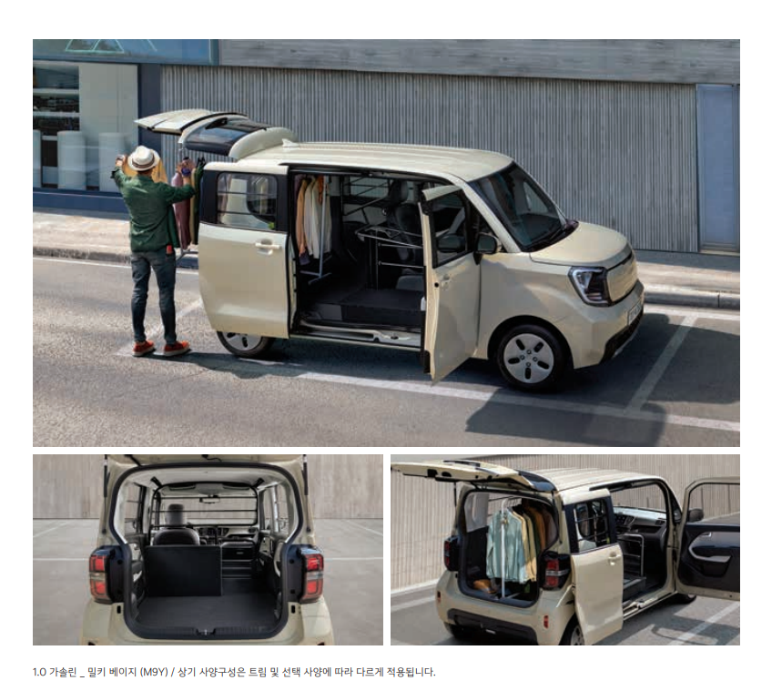 아래는 1인승 밴 레이의 모습인데요. 물류 운송이 이동식 스토어, 레저 등 사용자의 필요에 따라서 공간 활용이 가능합니다.