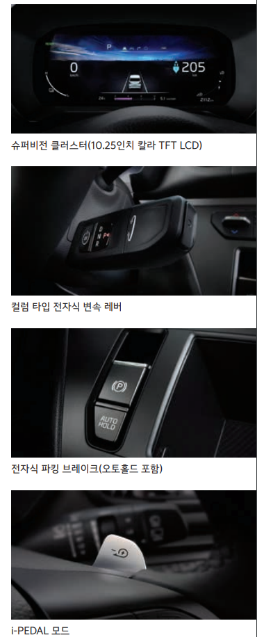 10.25인치 칼라 LCD 클러스터와 컬럼 타입 전자식 변속 레버로 하이테크 한 이미지와 함께 편의성을 더했습니다.
