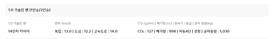 다음은 1인승 밴 레이 가격표 2024년 최신 가격표입니다.