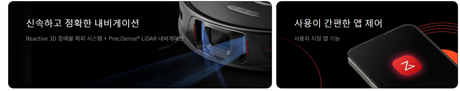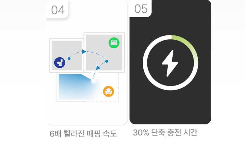 4. 센서 기능: 물체를 감지해서 피해 다니는 기능, 그리고 청소 구역을 인식하고 이동하는 기능입니다. 이 기능이 잘 되어 있어야지만 여러 장애물을 잘 피해서 청소를 할 수 있습니다.