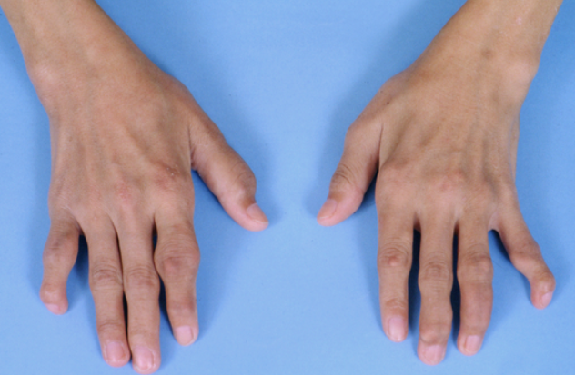 손가락 관절의 염증으로 주변의 근육들이 약해지거나 파열되는 경우가 있는데, 이렇게 되면 손가락이 틀어지면서 변형이 되면서 손이 제대로 된 역할을 수행해내는 것이 힘들어질 수 있습니다.