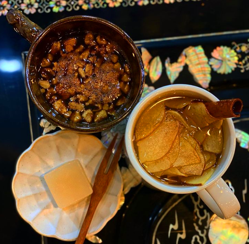한옥카페답게 전통차도 팔고 있는데요. 수제한방차, 애플시나몬티와 수제 양갱 등의 디저트류, 이곳 선운각의 인기메뉴라고 합니다. 쌀쌀해지는 날씨에 정말 잘 어울리는 메뉴인 것 같네요.
