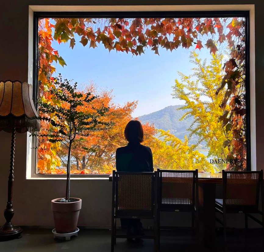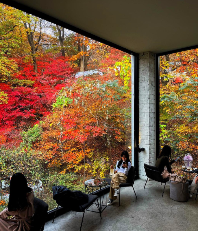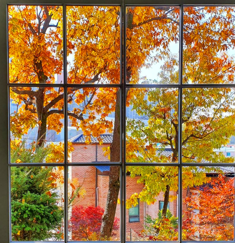 직접 보는 단풍도 너무 멋지지만 창밖으로 보이는 단풍들도 마치 퍼즐을 맞춰놓을 것 같은 느낌이 들게 하는데요. 단풍이 지면 이곳이 또 어떠한 뷰로 가득 찰지 궁금해지는 공간입니다.