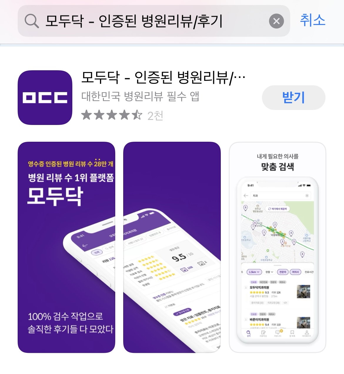 ✅앱스토어나 플레이스토어에서 모두닥을 다운로드합니다.