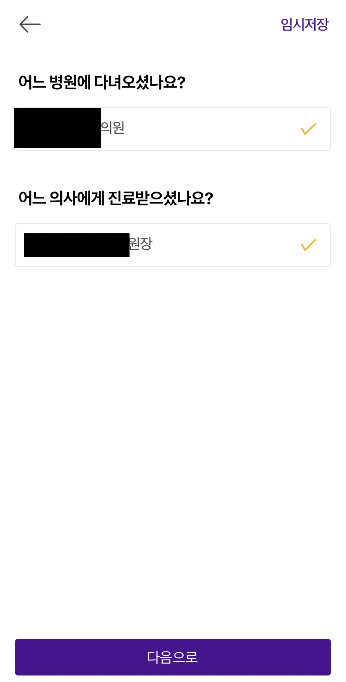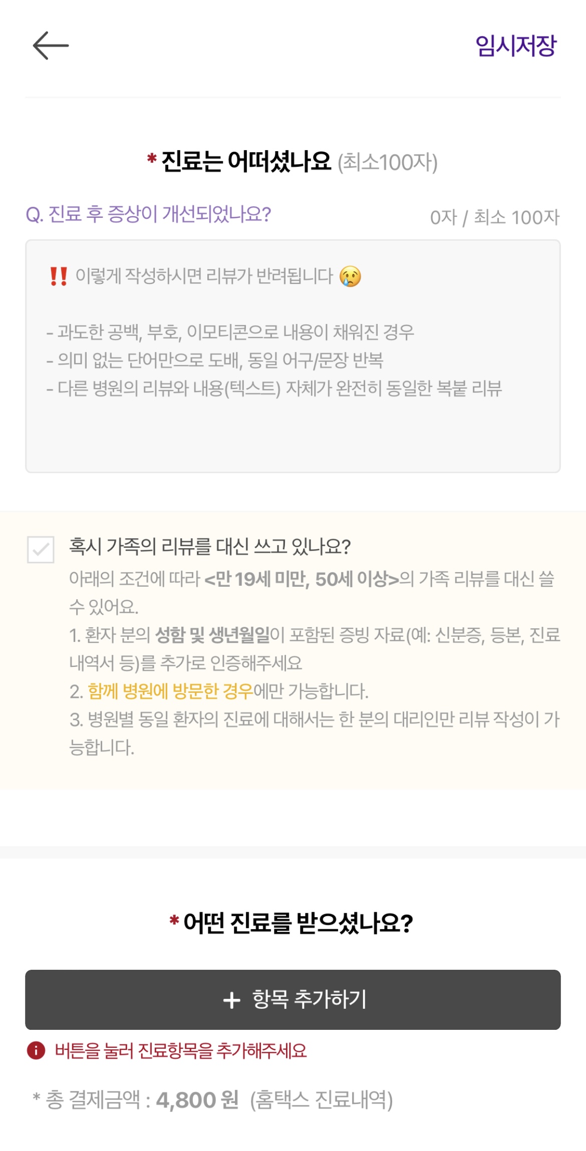 ✅각각의 항목에 들어가서 리뷰쓰기를 누르면 오른쪽과 같이 어느 의사에게 진료받았는지 적으면 됩니다.