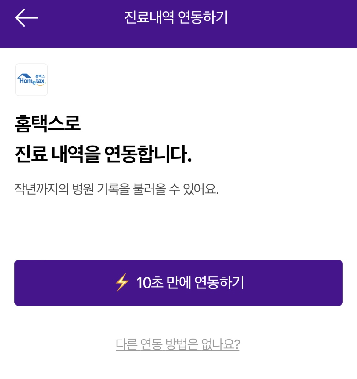 보통은 다녀온 병원에 영수증이나 사진을 찍어서 올릴 수 있으나, 그런 것을 미리 해놓지 않았기 때문에 홈택스로 진료 내역을 연동해야 합니다. 1년 전부터의 지금까지의 기록을 불러올 수 있습니다.