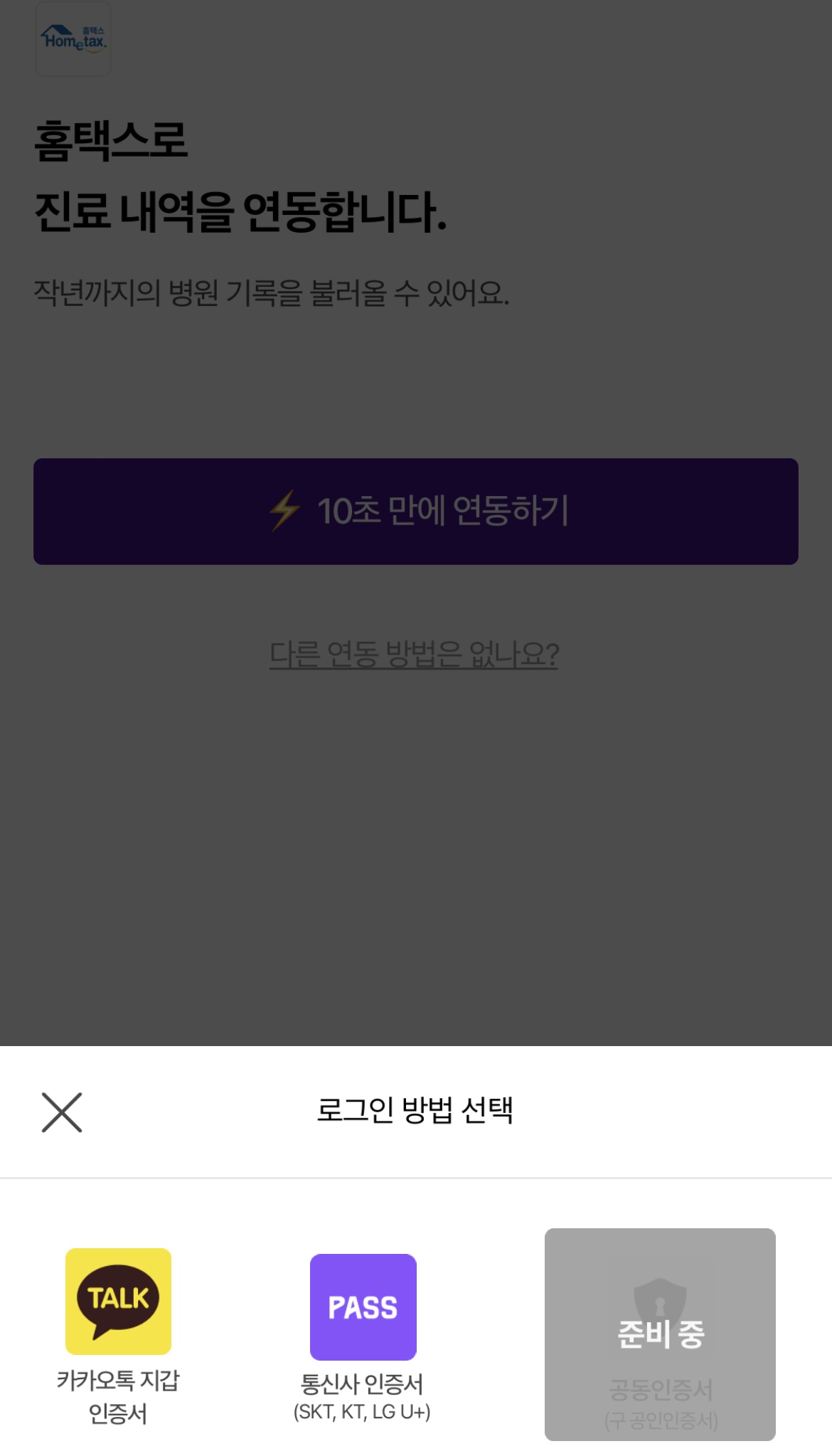✅아래의 카카오톡 지갑인증서로 인증을 하면 10초정도면 진료내역을 불러올 수 있습니다.