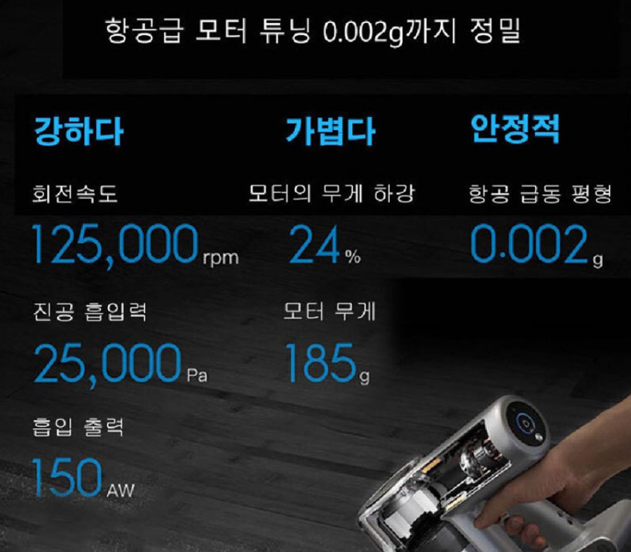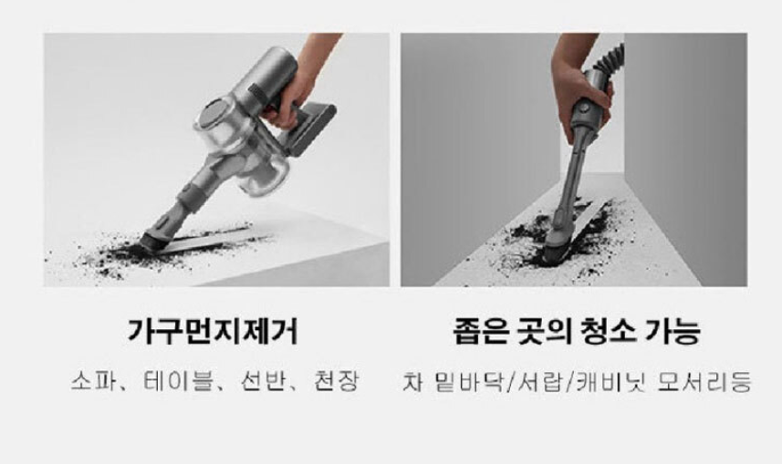일반적인 무선청소기는 고출력을 받쳐주기 위한 배터리로 인해서 무게가 상당히 나가는 편인데요. 그로 인해 청소 시 손목에 상당히 부담을 주기 마련입니다.