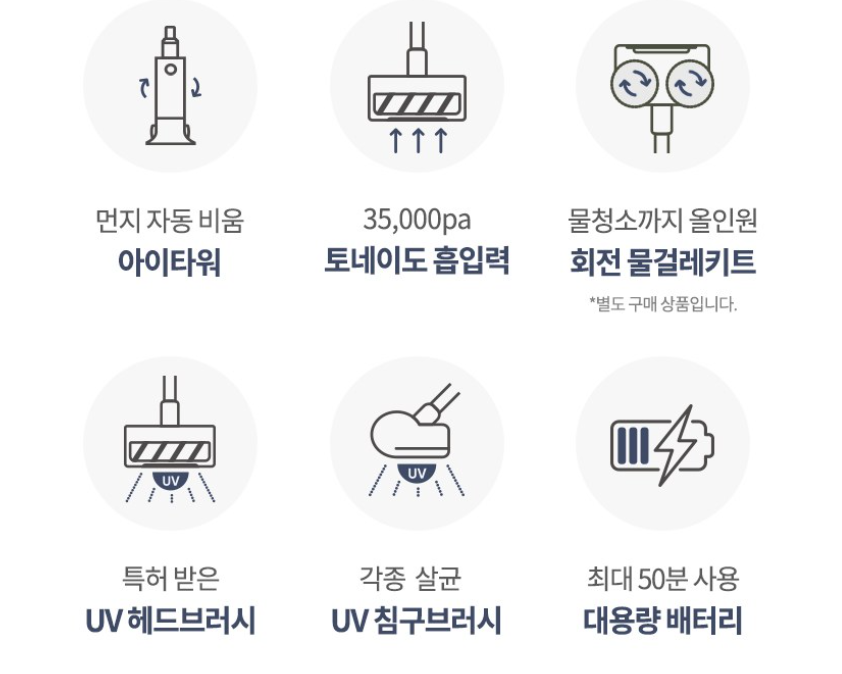 이 제품은 물걸레 키트를 포함해서 구입하시면 물걸레 청소도 할 수 있습니다. 한 번의 청소에 물걸레 기능까지 할 수 있다면 1석 2조 일 듯합니다.