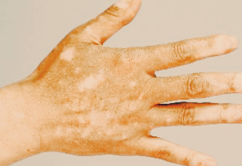이러한 흰색 반점이 얼굴과 목, 머리카락과 손가락, 팔꿈치 등에서 나타날 수 있습니다. 눈썹이나 머리카락에서는 탈색이 나타나기도 합니다.