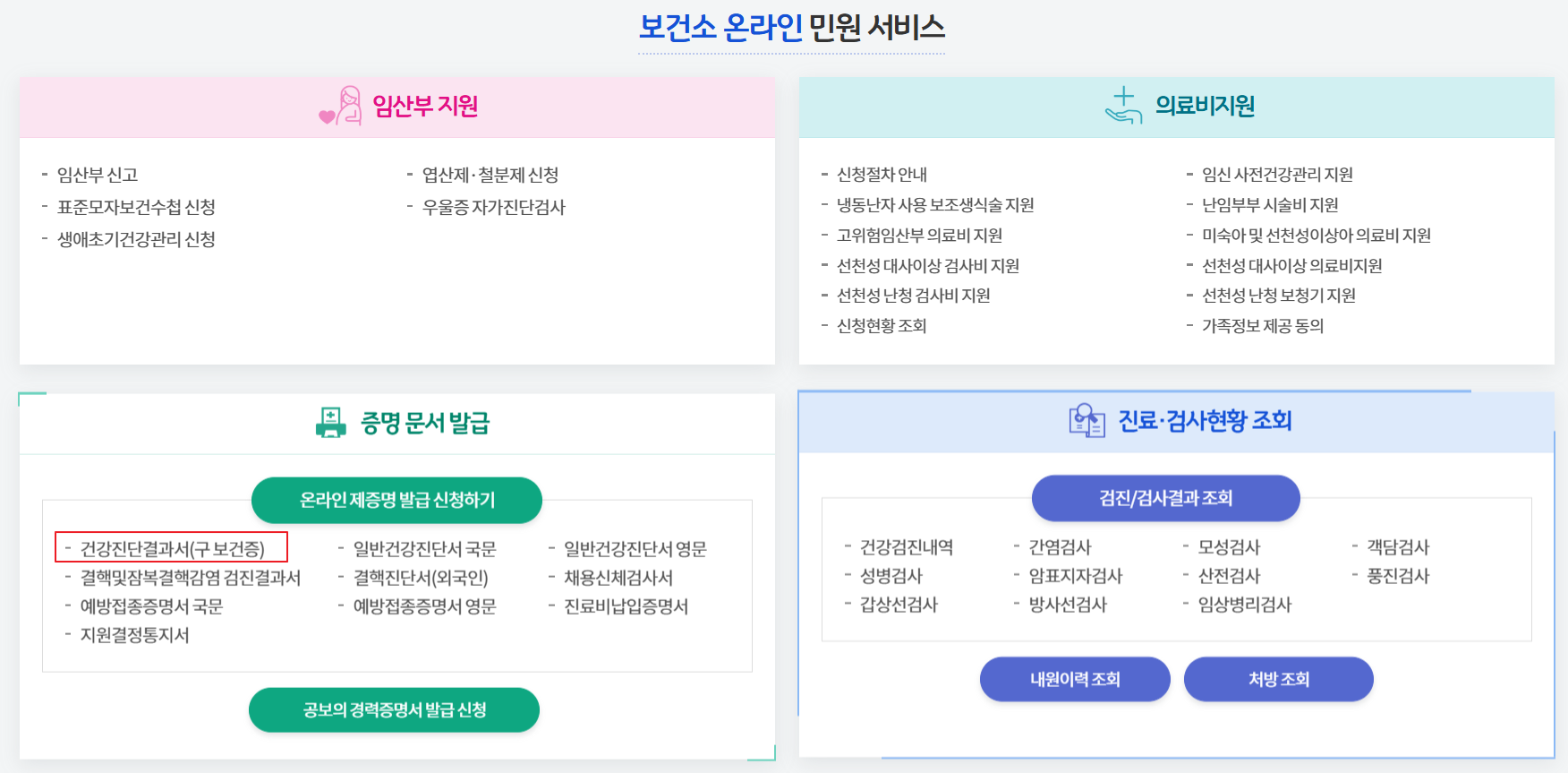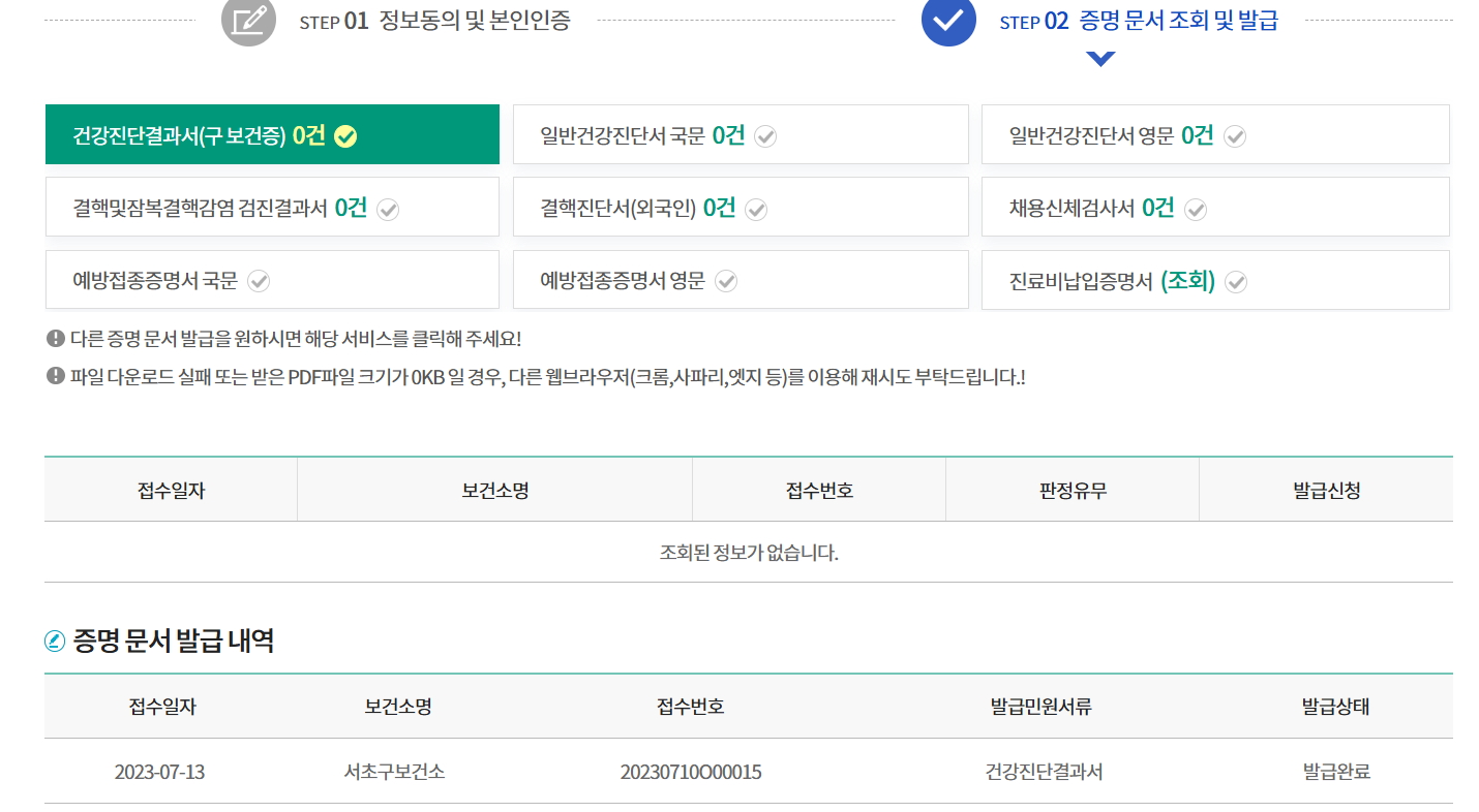 - 인터넷 발급이 안 되는 경우, 검진받은 보건소에 문의하면 해결할 수 있습니다.