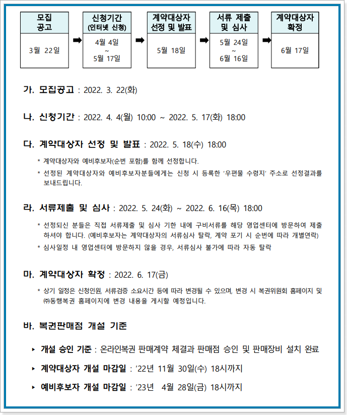 2022년 복권판매점 신규판매인 모집일정