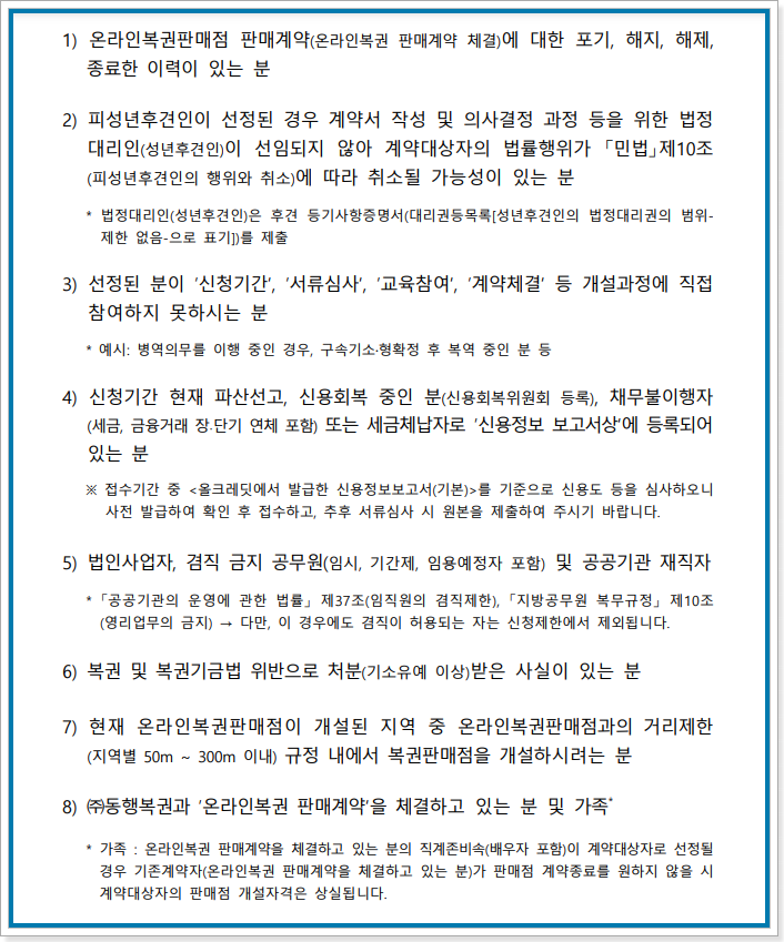 2022년 복권판매점 신규판매인 신청자격