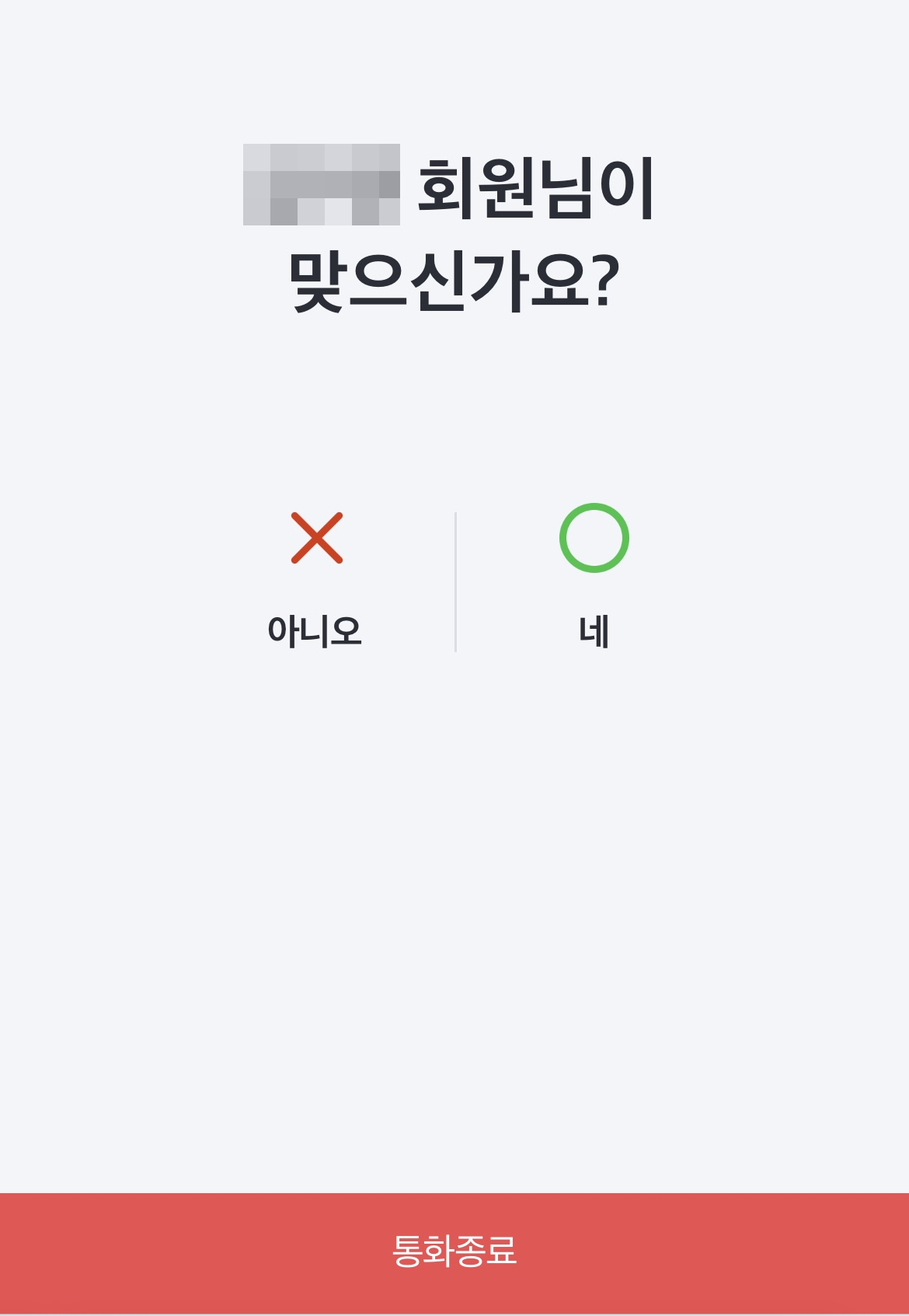 다음과 같이 본인의 이름을 확인하는 창이 뜹니다. 네를 누르시고 카드 비밀번호 4자리를 입력하면 됩니다. 비밀번호까지 입력이 완료되면 아래와 같이 상담직원 연결하는 화면이 뜨는데요. 확인(상담직원 연결)을 선택하시면 됩니다.