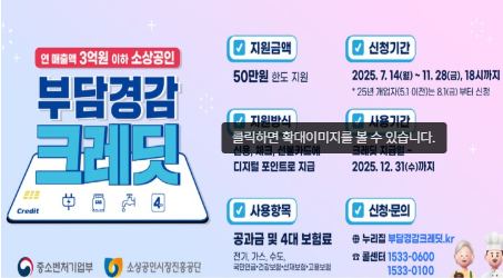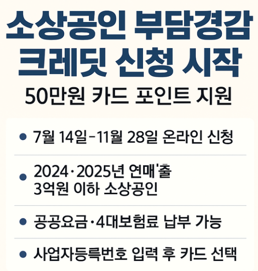 2025년 7월 14일부터 신청 가능한 부담경감 크레딧은 다음과 같은 자격 및 조건을 갖춘 소상공인에게 지급됩니다.