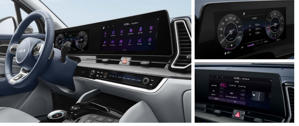 스포티지 2024년 디자인 한번 알아보도록 하겠습니다. 파노라믹 커브드 디스플레이는 정보를 더 쉽고 편리하게 인지할 수 있도록 도와줍니다. 인포테인먼트 시스템과 공조기능을 통합 조작할 수 있는 터치 방식의 전환 조작계, 다이얼 타입의 전자식 변속기 등 최첨단 사양이 혁신적인 차량 경험을 가능하게 합니다.