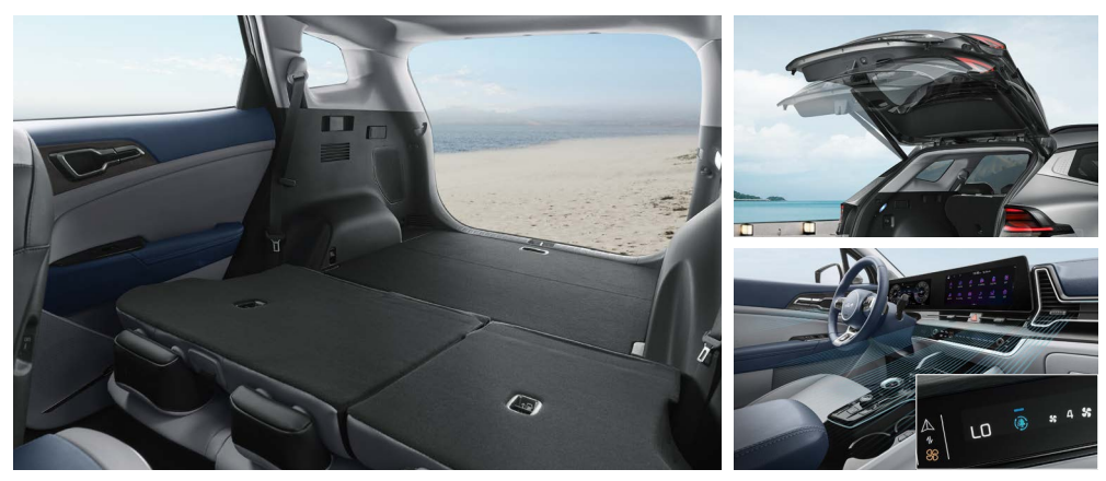 일반 시트 대비 접으면 아래쪽으로 내려가는 폴드 & 다이브 시트를 2열에 적용하여 더욱 넉넉한 1열 후방의 확장된 공간을 활용할 수 있습니다. 테일게이트에 적용된 리모트 폴딩 시스템으로 2열 시트를 폴딩 하여 화물 적재와 수납이 원활할 수 있도록 도와줍니다.