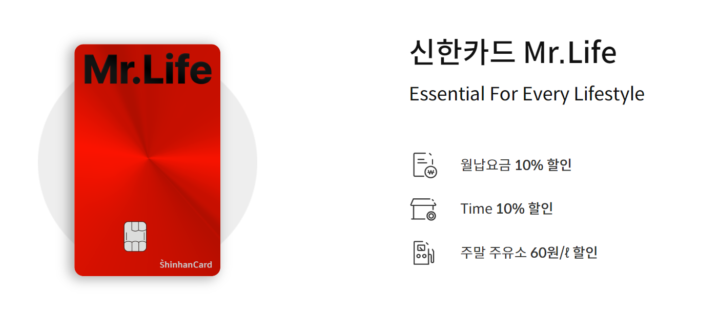 전기요금, 도시가스 요금 등 각종 공과금이 할인되는 신한카드입니다.
