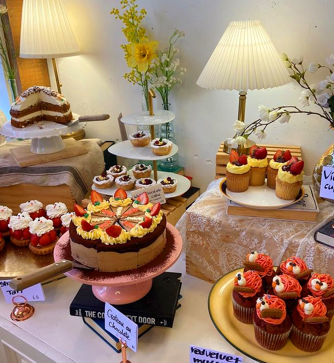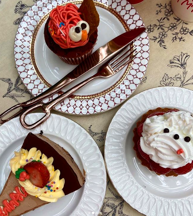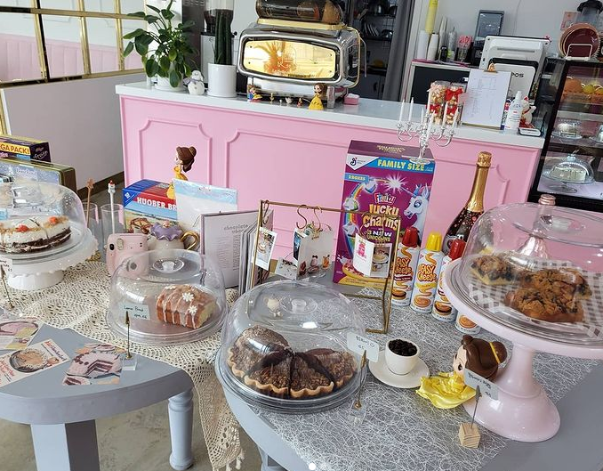 역대급 비주얼의 케이크들이 한 쪽에 자리 잡고 있습니다. 진짜 케이크인지 모형인지 헷갈릴 정도로 굉장히 정교하고 섬세한 디자인의 케이크입니다. 전부 다 먹어보고 싶은 비주얼인데요. 그릇과 식기 등 소품 하나하나에도 정성을 기울인 듯한 느낌이 드는 공주풍 카페인 듯합니다. 이런 곳에서 사진을 찍으면 정말 '나도 셀럽?' 인 느낌을 받으실 수 있겠죠?