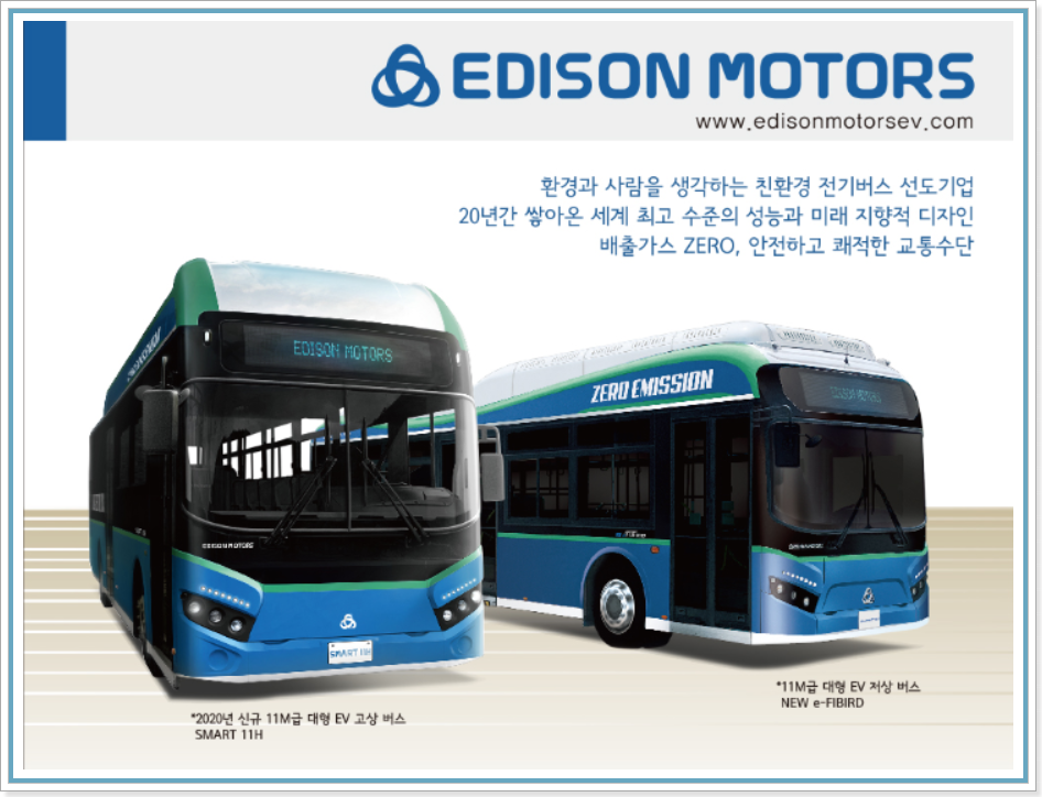 이후 타이치그룹의 경영이 악화되면서, 한국계 회사로 다시 매각이 되면서 에디슨모터스로 사명을 변경하게 됩니다. 에디슨모터스로 바뀌고 나서는 전기버스를 포함한 다양한 모델을 제작하고 연구하는 과정중에 있습니다.