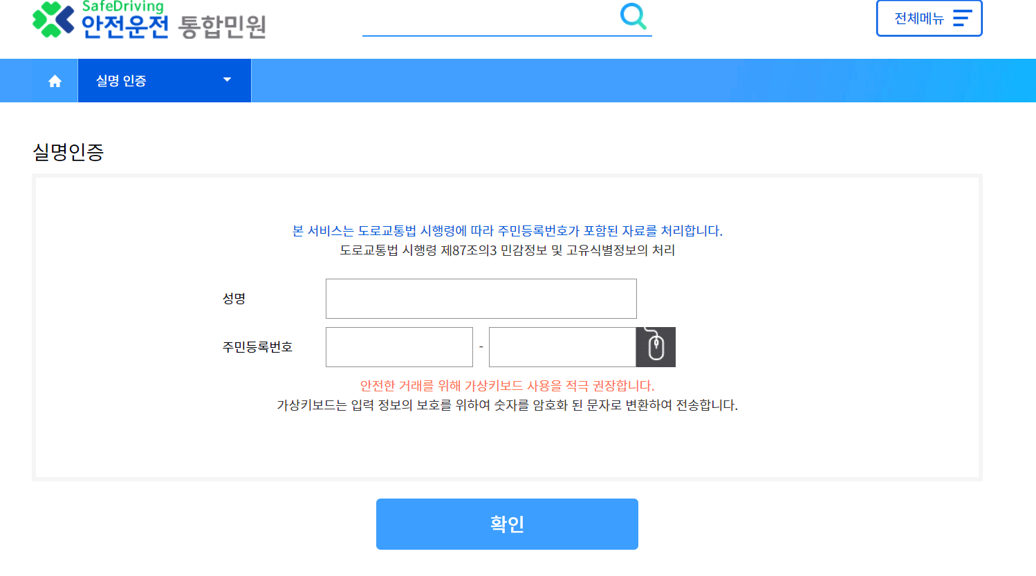 다음으로 아래와 같이 실명 인증을 합니다.