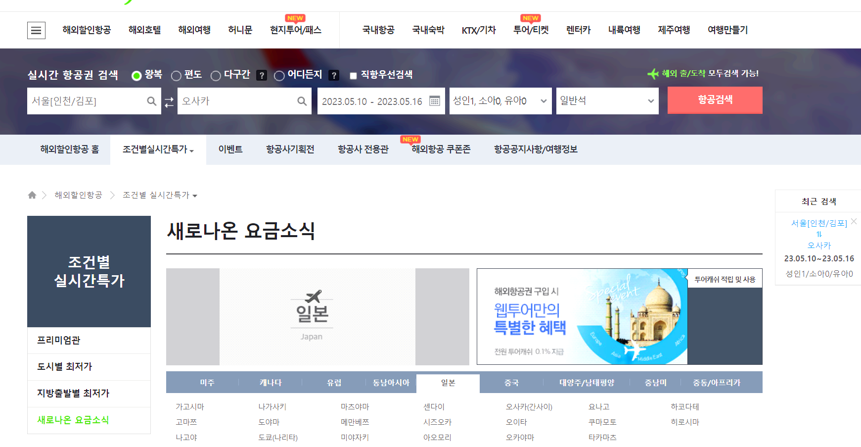 일본 항공권 최저가