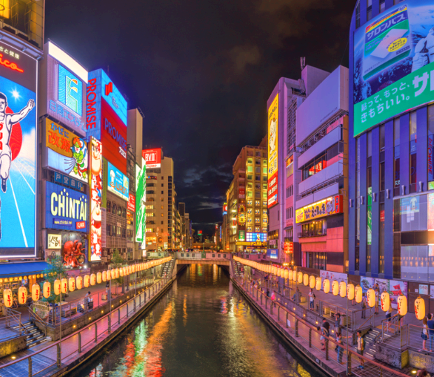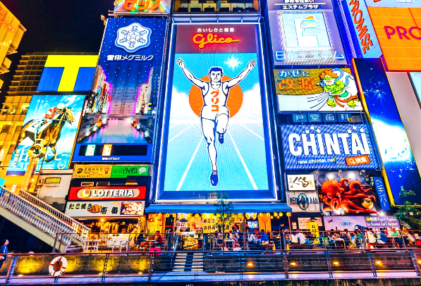 오사카에는 유명한 번화가도 있는데요. 바로 도톤보리입니다. 강을 따라 형성된 유명 명소로 강의 양편에 보이는 화려한 불빛의 상점들이 오사카 밤을 아름답게 만들고 있습니다.