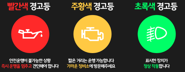 대표적인 빨간색 경고등과 그 의미를 살펴보겠습니다.