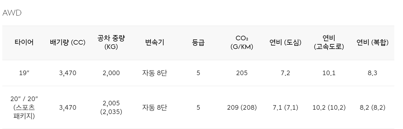 이 중 소비자들에게 인기가 가장 높은 가솔린 터보 2.5 모델은 5,890만 원에서 6,570만 원이고 가솔린 터보 3.5 모델의 가격은 6,550만 원에서 7,390만 원으로 책정이 되어 있습니다.