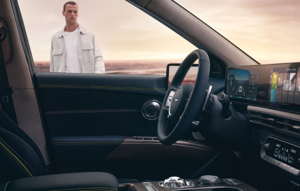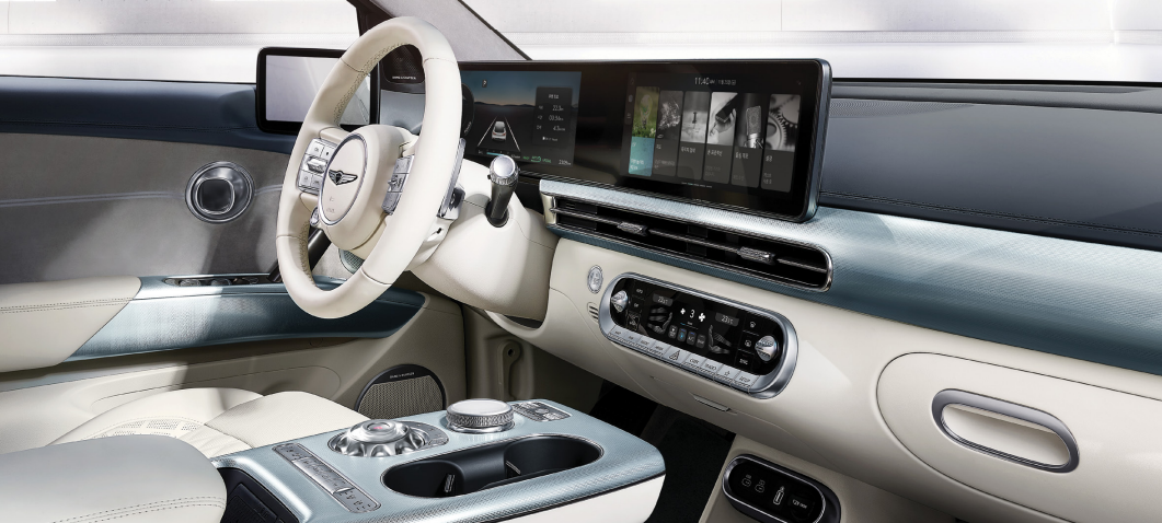 크리스털 스피어(Crystal Sphere)라는 독특한 전자 변속기가 실내의 첨단 이미지를 대표합니다. 이 변속기는 차량의 전원이 꺼져 있을 때 무드등으로 사용되며, 전원이 켜지면 기어 셀렉터로 변환됩니다. 또한, 친환경 소재를 사용해 럭셔리와 지속 가능성을 동시에 추구했습니다. 12.3인치 듀얼 디스플레이와 증강현실(AR) 헤드업 디스플레이는 첨단 기술의 결정체를 보여줍니다.