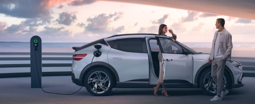 전기차임을 한눈에 알아볼 수 있도록 그릴 디자인을 최소화하고, 슬림한 쿼드 램프와 공기역학적 차체 라인을 채택했습니다. 후면부는 독특한 리어 램프와 날렵한 루프라인이 조화를 이루며, 쿠페형 SUV의 이미지를 강조합니다.