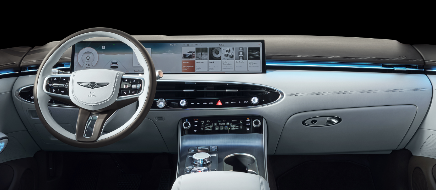 27인치 OLED 통합형 와이드 디스플레이는 하나의 파노라믹 디스플레이로 합쳐진 클러스터와 인포테인먼트 시스템이 대시보드 위로 와이드하게 펼쳐지면서 미래지향적이면서도 고급스러운 분위기를 연출하고 있습니다.