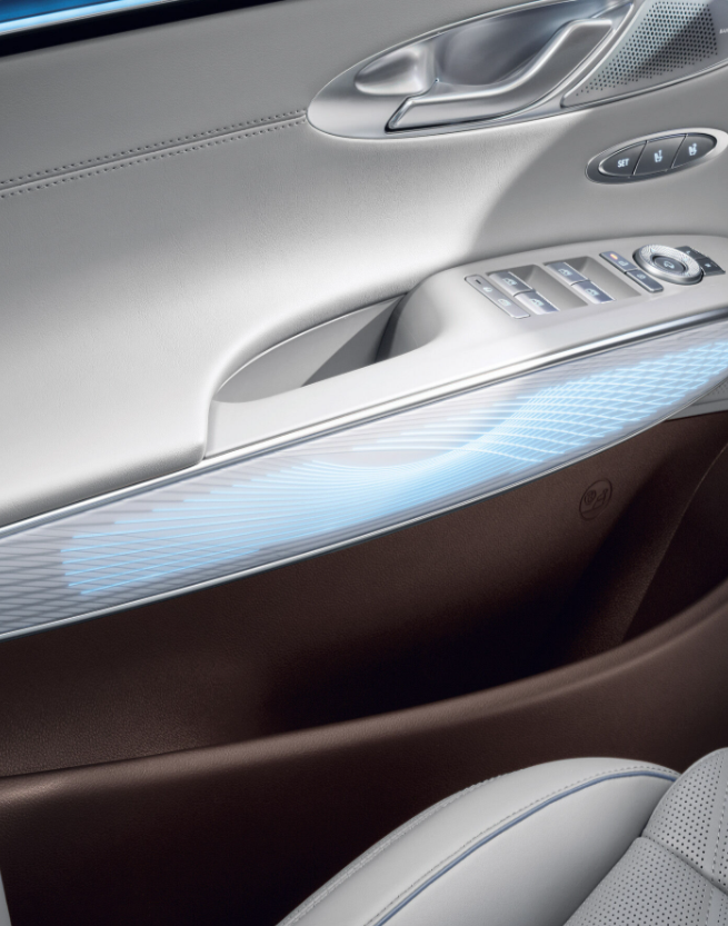 슬림형 에어벤트는 양측 문으로 얇고 길게 이어져 확장된 공간감을 더욱 강조하며, 간결하게 적용된 크롬 라인은 제네시스의 디자인 철학인 환원주의적 디자인에 기반한 정제된 아름다움을 더하고 있습니다.