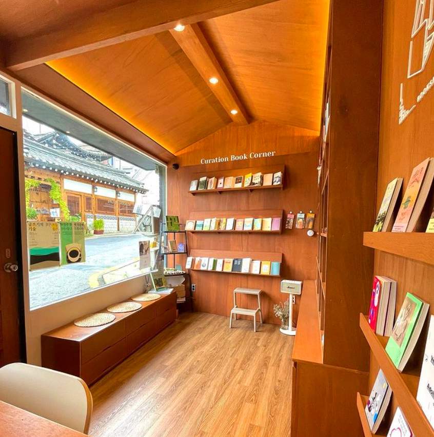 북촌 한옥마을 어느 가파른 길에 자리 잡은 독립서점 & 카페 비화림입니다. 일명 큐레이션 책방, 익숙하지 않을 수도 있는데요. 작가님이 직접 운영하시는 서점이라 엄선된 책만 진열대에 올라가 있습니다. 아담하지만 시선을 사로잡는 외관과 유니크한 내부 때문인지 들르는 사람은 많은 편입니다.