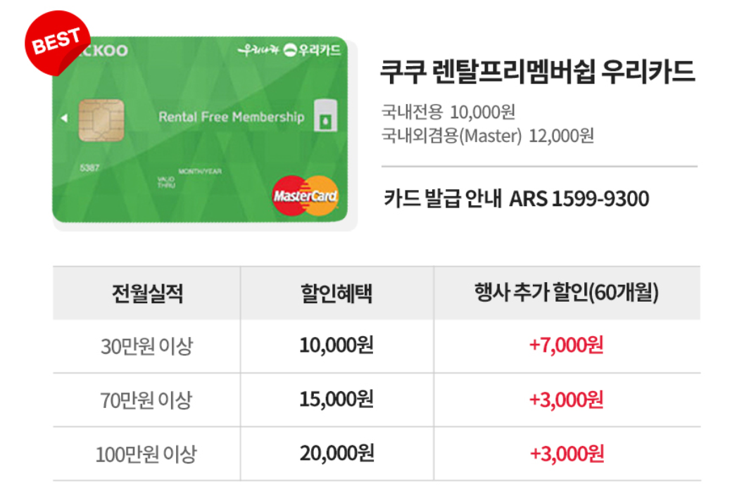 쿠쿠 정수기 렌탈 가격 제휴카드 사용하면 월 만원대로 렌탈이 가능합니다.