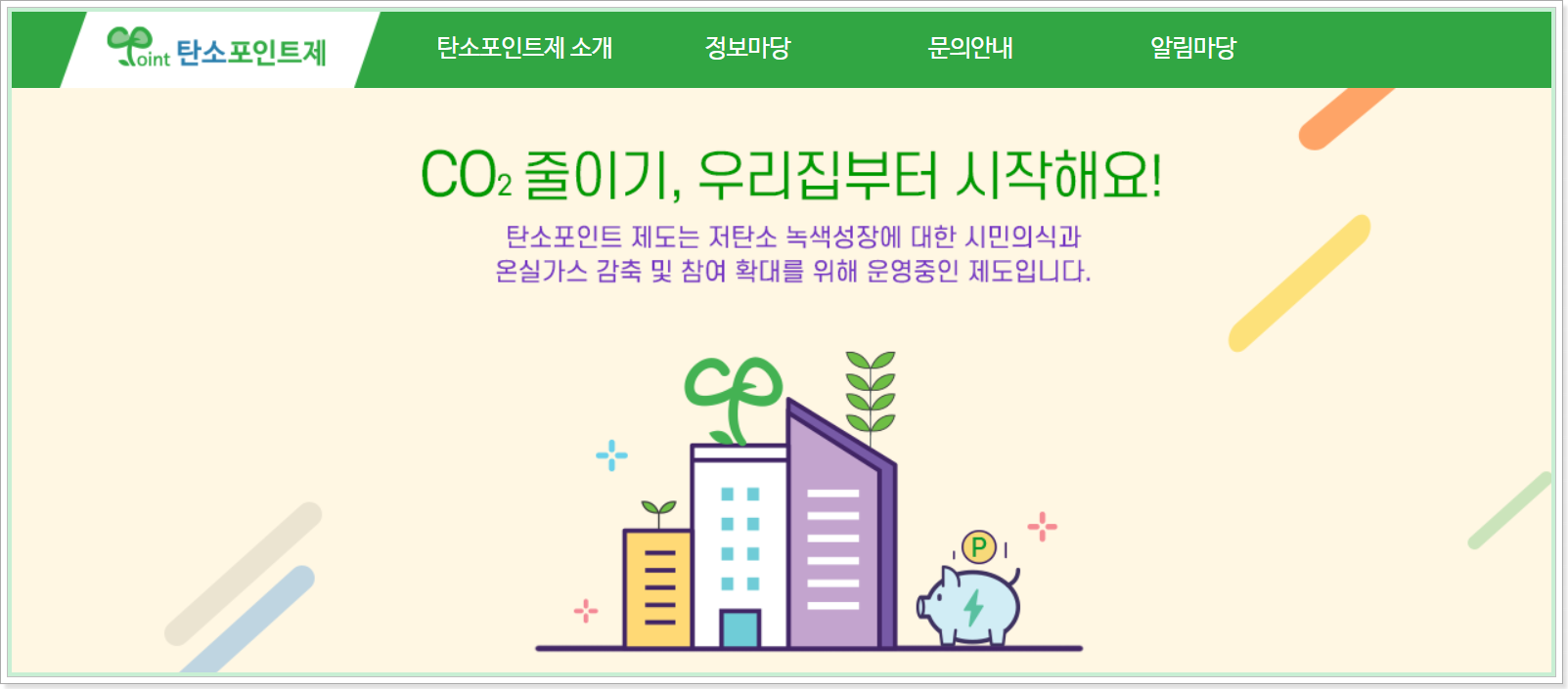 기후위기 대응을 위해 온실가스를 줄이기 위한 운동으로 가정 또는 아파트단지 등에서 도시가스,전기,상수도의 사용량을 절감하고 적게 쓴 만큼 탄소포인트를 부여하는 온실가스 감축실천제도입니다.