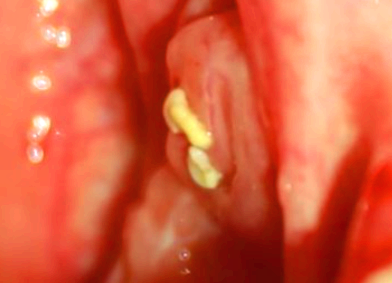편도에 정상적으로 발생하는 분비물이 입속의 음식물과 세균 등과 결합해 반응하면서 노란색의 알갱이와 같은 이물질이 생기는데요. 이것이 편도결석이고 실제로 만지게 되면 돌처럼 딱딱한 느낌은 아니고 말랑합니다.