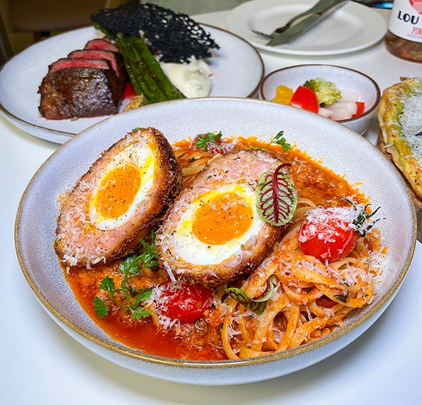 누들종류는 스테이크 콜드누들, 스카치에그 링귀니 볼로네이즈, 베이컨 크림 파스타 등이 준비되어 있습니다.