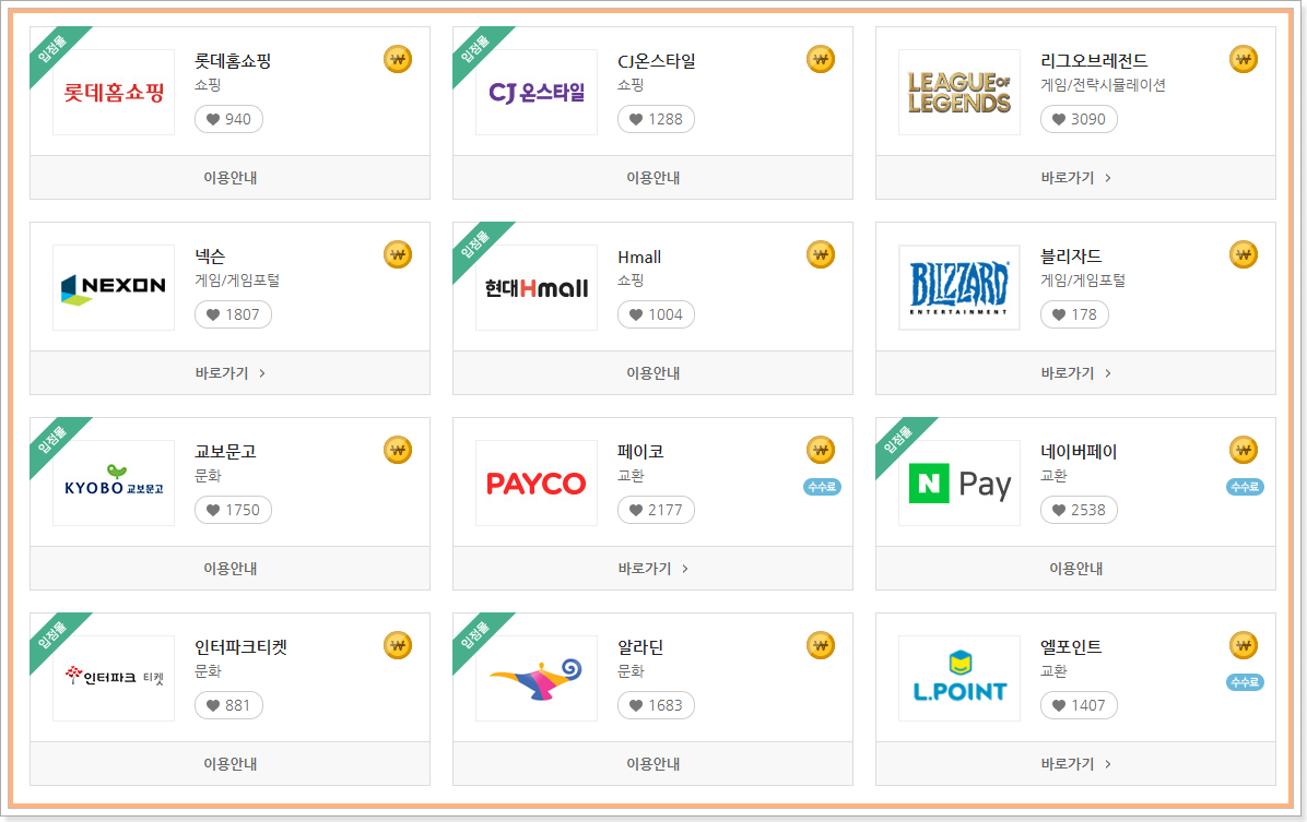 아래에 사용처는 일부에 불과하고 직접 검색을 해보시면 더 많은 사용처를 아실 수 있습니다. 총 119개의 온라인사용처를 확인하실 수 있습니다.